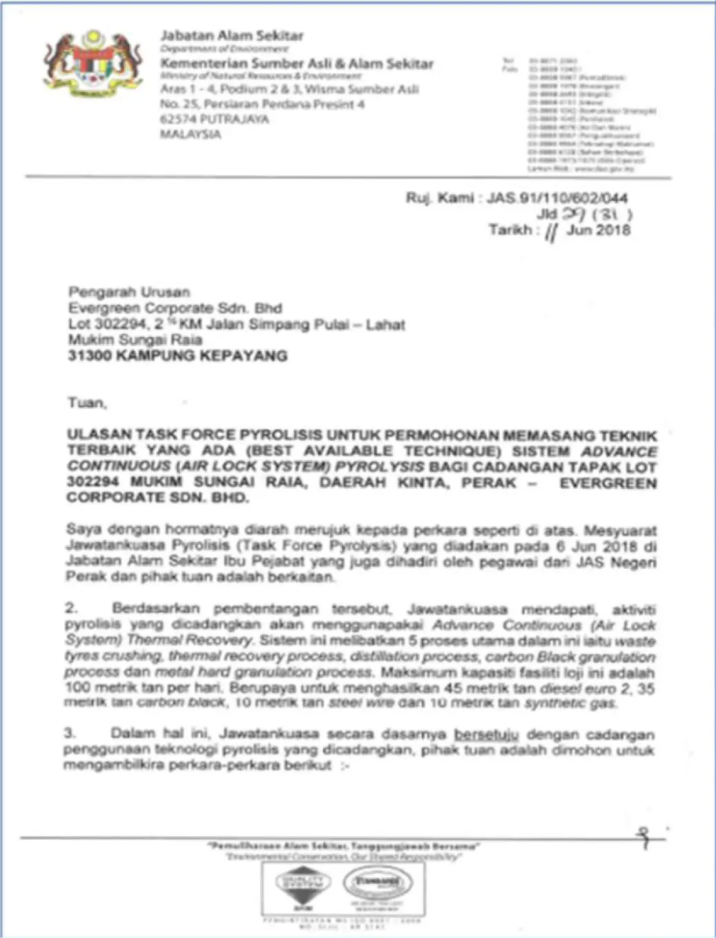 To further improve the efficiency and environment impact of our operations, we have co-operated with the Jabatan Alam Sekitar Malaysia (Department of Environment) to bring in new and cleaner technology and help set the “Best Available Technology” standards in Malaysia in June 2018. We are also working closely with the State government through her agencies to promote green technology investments in Malaysia.