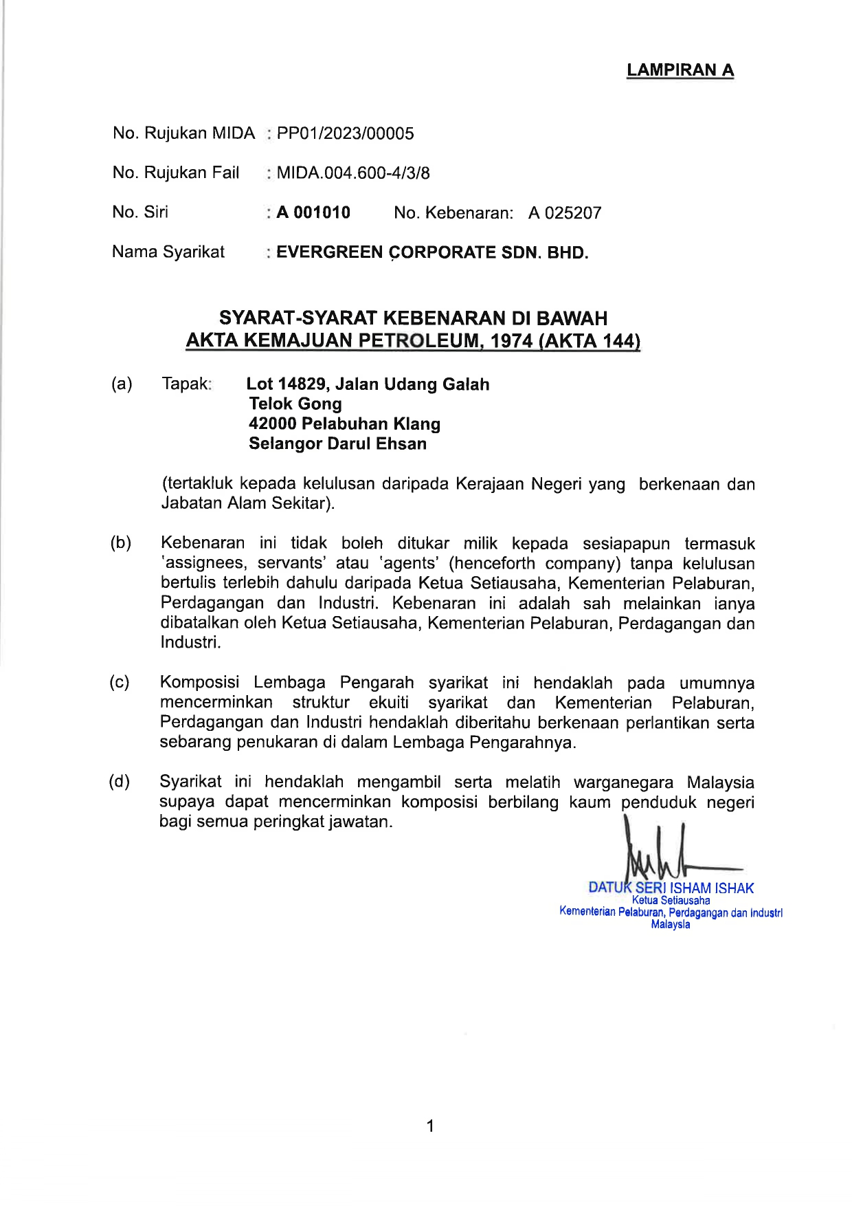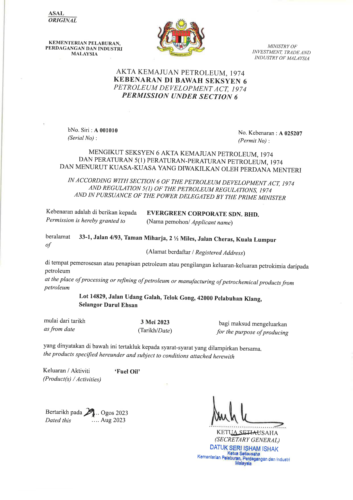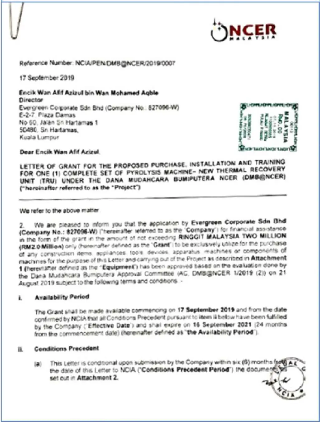 Our licensed operations in Simpang Pulai, Perak has operated a 30 tons per day plant since 2009. Currently set up a Phase 2 pilot plant in 2021 at Telok Gong, Selangor using TRU green technology with recycling capacity of 60 tons per day. Up comming participation with MARA, aim to set up Phase 3 plant at Simpang Pulai, Perak using TRU green technology with recycling capacity of 480 tons per day with investment of MYR200m (Target on 2024).